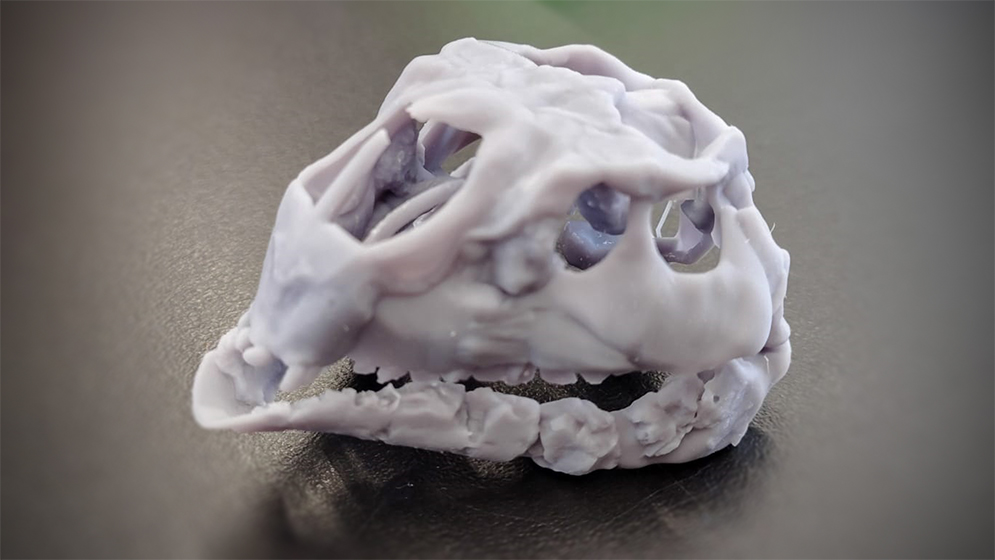Construcción 3D del cráneo de Foskeia pelendonum. Crédito: Emiliano Zeballos.