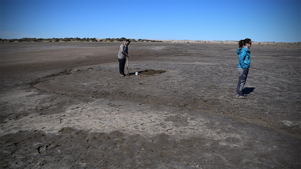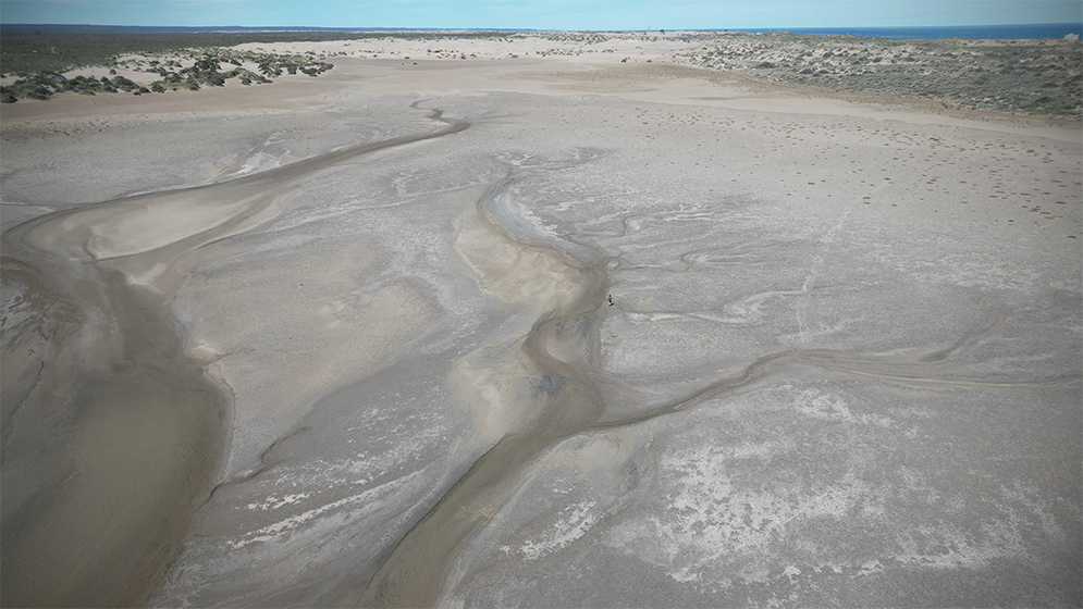 En la Bahía de San Antonio, científicos del CONICET investigan estructuras microbianas clave para interpretar ambientes antiguos