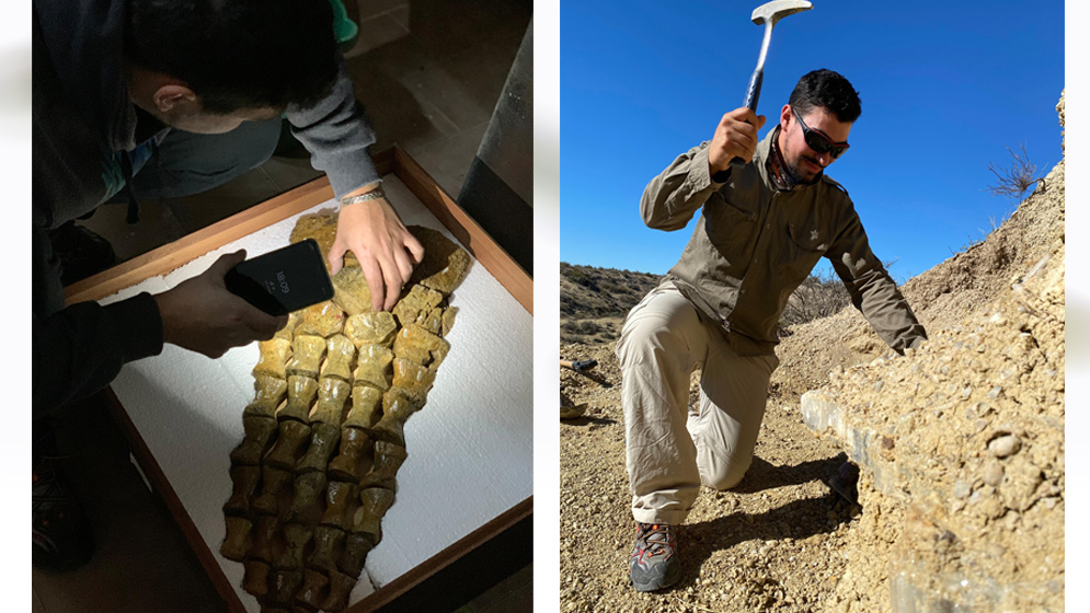 "Fue Marianella Talevi, investigadora del CONICET, quien me impulsó a desarrollar una tesis doctoral en esta temática. Los estudios paleopatológicos se han utilizado para comprender la historia de lesiones y enfermedades en el registro fósil, y permiten deducir el tipo de daño esquelético que ocurre en ejemplares fósiles, su causa adyacente y por los aspectos relacionados con la paleoecología y de comportamiento", indica Matías Mitidieri, becario del CONICET en el Instituto de Investigación en Paleobiología y Geología (IIPG, CONICET-UNRN) y primer autor del trabajo publicado en la prestigiosa revista internacional Cretaceous Research. Además, es el único experto que trabaja específicamente en esta temática en Argentina.