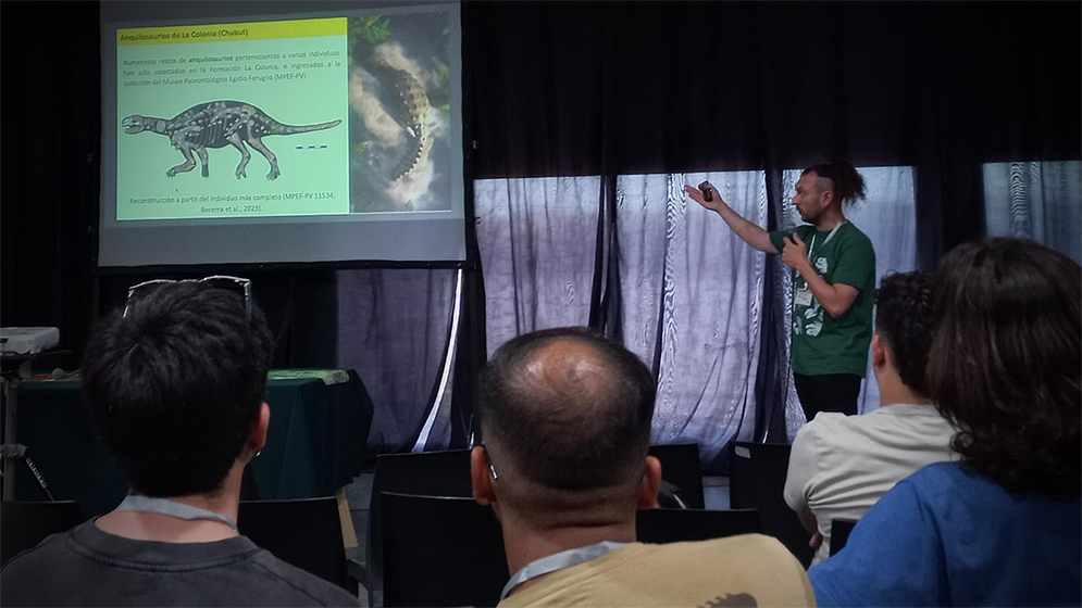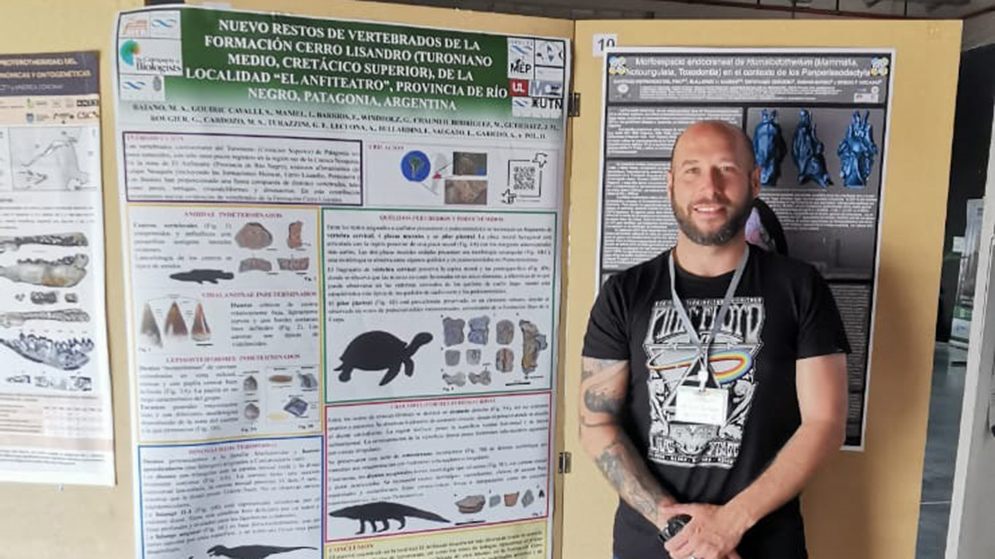 "Fue una experiencia muy enriquecedora en lo laboral, porque se trata de un congreso que se realiza cada cuatro años y, obviamente, los investigadores, becarios y técnicos que asisten presentan los avances que desarrollaron durante ese período. Es una manera de mantenernos al tanto de lo que están investigando otros grupos y profesionales en cada uno de sus campos, y así lograr una actualización real de la disciplina. Desde un costado más lúdico y social, también es una oportunidad para reencontrarse con colegas y amigos que no vemos hace tiempo, aunque sigamos trabajando en conjunto. Además, en esta ocasión, tuve la oportunidad de presentar lo que vengo desarrollando en los últimos años, especialmente mis hallazgos paleontológicos más recientes", comenta Mattia Baiano, becario del CONICET en el Museo Paleontológico Municipal "Ernesto Bachmann", Villa El Chocón, Neuquén.